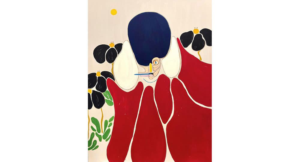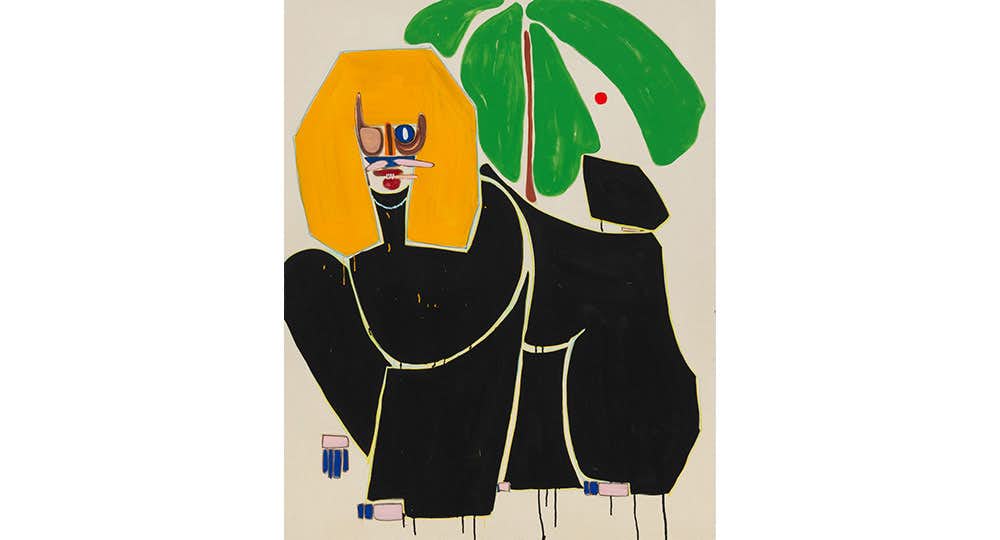 本展では、遊び心あふれるプードルのドローイングシリーズを、紙からキャンバスへと舞台を移した最新作を展示。より本質的な視覚要素へと抽象化されたプードルたちが、会場でそのユニークな存在感を放つ。