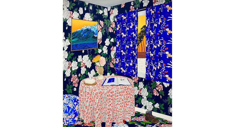 本展は、代表作である室内画と風景画にフォーカスし、イーガンの過去最大規模の作品である《Miro’s Corner》を中心に構成。「Miro」とは画家のジョアン・ミロを指すと同時に、パンデミックの最中にイーガンのもとに誕生した愛娘ミロが、これ以上ない大きな喜びと圧倒的な変化を作家にもたらしたことを意味している。また、タイトルの後半の「Corner」には、パンデミックによる私たちの経験を含めた、比喩的な意味さえも込められており、「隅(corner)を見つめるという視点と象徴性は、言葉そのままに、この時期に私たち全員が自身の空間や、精神的に追い詰められていた可能性があることを示唆しています」と作家は語る。
