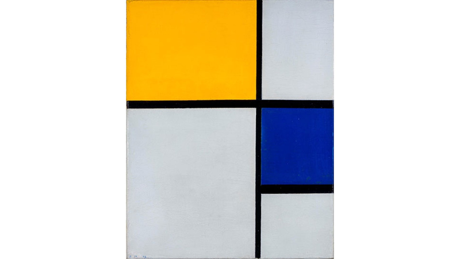 モンドリアンの名とともに知られる垂直水平の線と、三原色、無彩色で描かれた「コンポジション」シリーズは、絵画史の転換点として画家の誕生から150年を迎える現在も重要であり続けている。