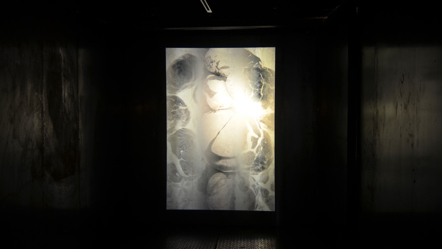 「Ghost of Copy」はそれぞれ、グレースケールで「反射、反転、反復」を強調する操作がなされ、リアルとバーチャル、具象と抽象、自然と人工、軽さと重さの接合を見せる。また幾何学的なものと抽象的なもの、自然物と人工物の「中間」が模倣され、例えば、農業をテーマとした写真作品は、有機的な形状を彷彿させるいっぽう、その模様が農業の機械化と大量生産の象徴を思わせる。