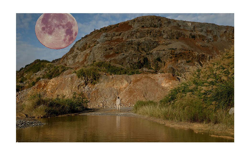 最新作《リフレーミング》では、カルスト地形で知られる名護市安和を舞台に、沖縄の海と山とをつなぐ寓話を創作。過去と現在、地上と地下、山と海、人と人でないものとを切り結び、現代の風景に重ね合わせる物語を紡ぎ出す。