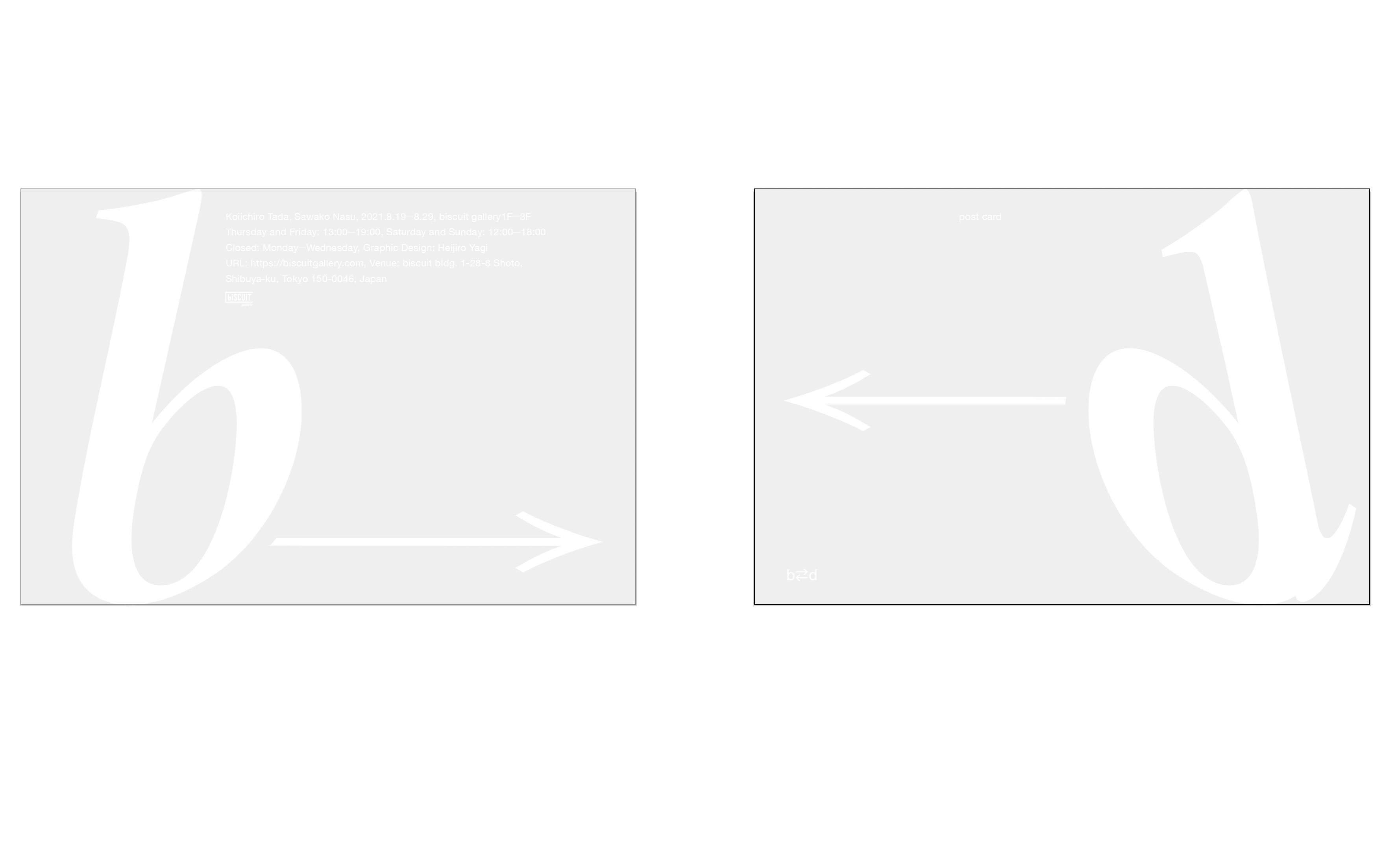 渋⾕のbiscuit galleryでは、美術作家の多⽥恋⼀朗と那須佐和⼦による2⼈展「b⇔d」を開催する。会期は8⽉19⽇〜29⽇。