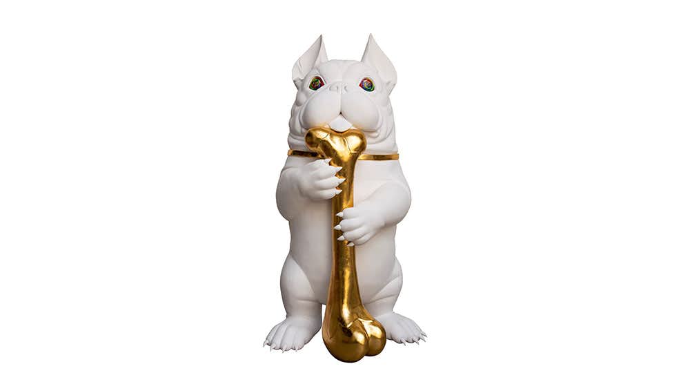 本展は、30年におよぶ作家人生を回顧するもの。黄金の骨をたずさえる3メートルの《BOBRO(ボブロ)》や、漆黒の彫刻群「ブラックスターシリーズ」、アメリカ生まれの人気ポップアイコンや日本のアニメキャラクターたちが登場する世界の縮図的超大作など、立体から新作の絵画作品まで100点以上を展示している。