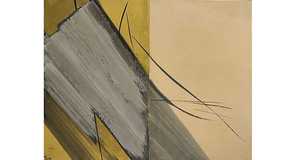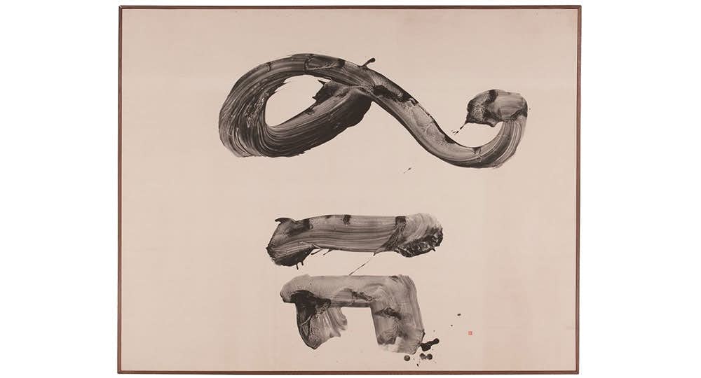 本展は、書家・比田井南谷の作品から多大なインスピレーションを受けたと言う。南谷は、文字を超えた線の形象を追求し「心線」という書芸術の新境地を開いた作家。長く続くシステムを軸に、しかしそれらにとらわれることなく新しい概念でひとつの書芸術を確立し、前衛書の先駆者としてその功績はいまに続いている。