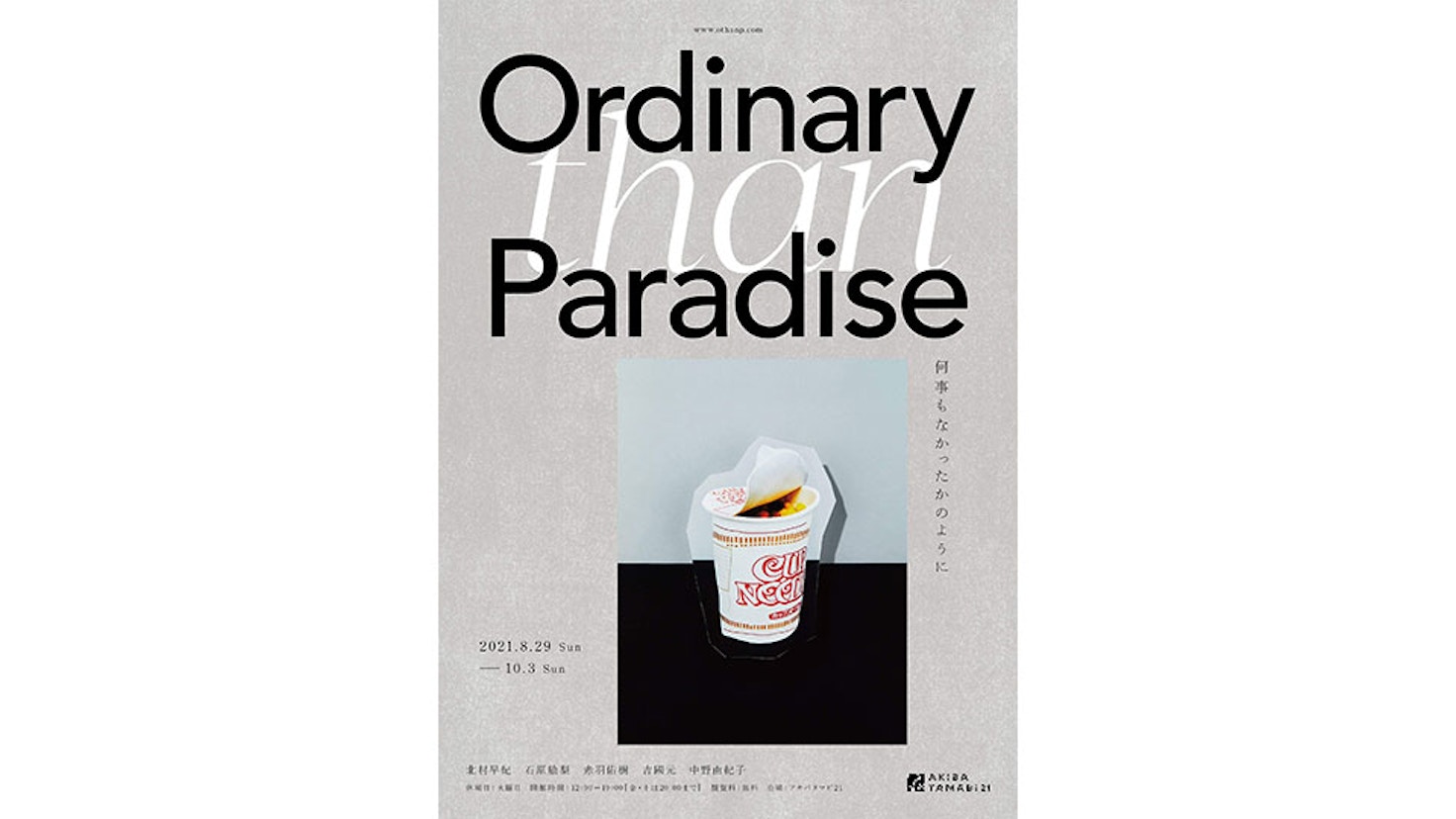 アキバタマビ21でグループ展「Ordinary than Paradise 何事もなかったかのように」が開催。本展では、作家がそれぞれの変化のなかで、自らの「Ordinary」と「Paradise」を問いながら制作した作品群を紹介する。