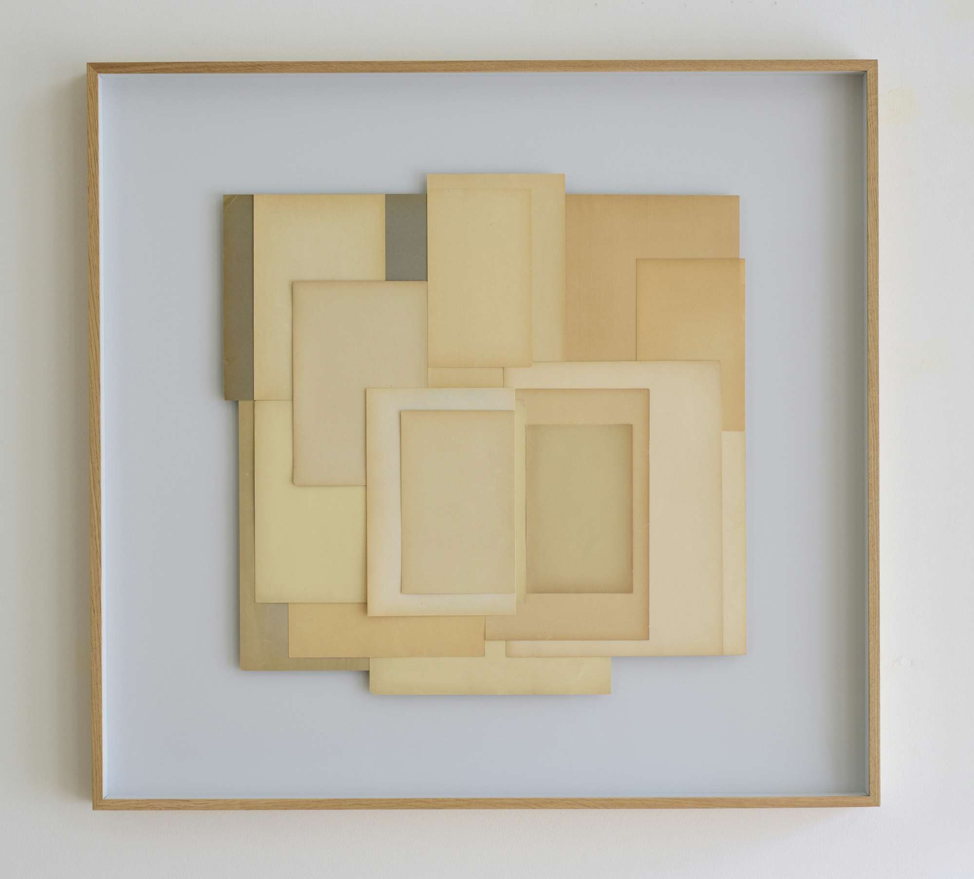 本展は、80年代から生命や時間をテーマに制作をしてきた崔が、2010年から6年間、ドイツを拠点に制作した連作「Paper Poem」を紹介。当時住んでいたベルリンのアパートのゴミ捨て場に古本が捨てられる様子を目にした崔は、それらを自分のアトリエに運び、そこから何も印刷されていない見返り紙や遊び紙のページを切り取りコラージュをつくった。日常の光によって焼けた古書の縁は、それがたんに空っぽの空間ではなく、具体的な事物であり、私たちと同じ時間のなかに共存してきた存在であるという事実を気づかせる。