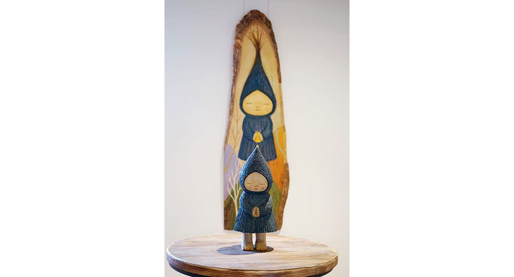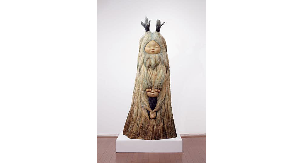 楠などを丸太の状態から削り出し、油絵具で彩色された中村の作品は、植物や雲などをまとった妖精のような姿をし、ふっくらとしたピンク色の頬がとても愛らしい。いっぽうで、瞳は軽く閉じていたり、どこか遠くを見つめるまなざしをしていたりと、その視線の先は見る者に委ねているような不思議な雰囲気を持つ。