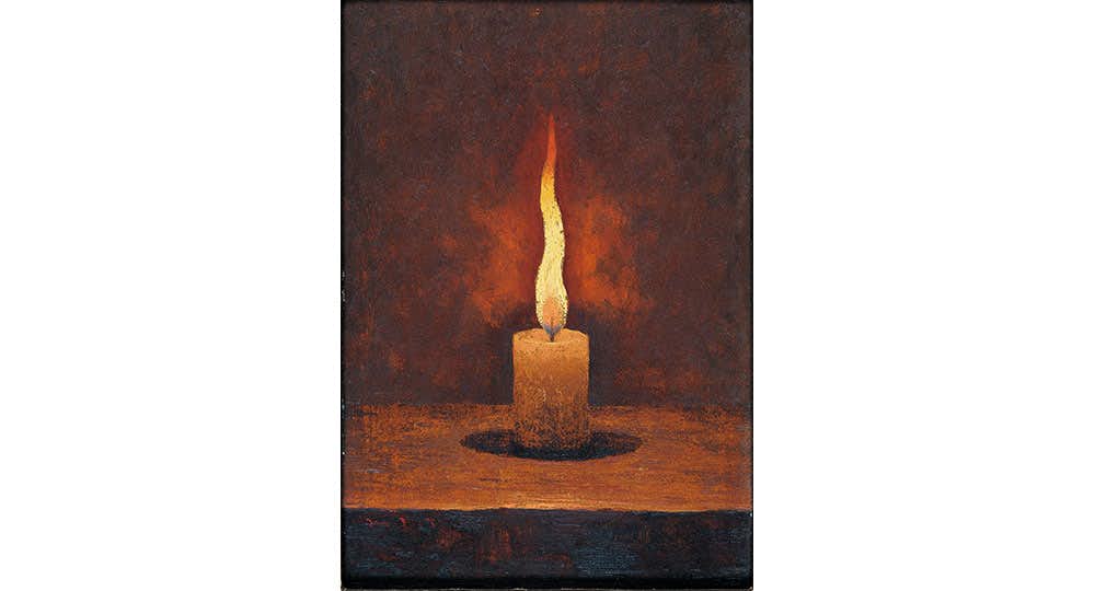 代表作「蠟燭」に見る、生涯画題とした1本の蝋燭の火や、最晩年に描いた太陽、夜空に浮かぶ月の光など、ただひとつの対象に独自の「写実」への執念を込めた連作には、光と闇を見つめた画家の魂がゆらめいている。