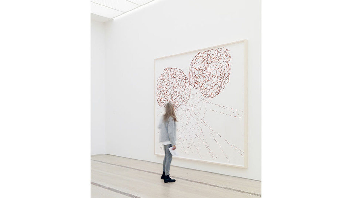 テムズ河の水面を切り取った写真のシリーズ、6週間にわたりアイスランドの温泉で女性の表情の微妙な変化を記録したポートレイト、島の地図をモチーフにしたドローイング、水鏡を思わせるガラスの彫刻。ホーンの手で、ひとつの概念が多様な作品へとかたちを変えて現れるさまは、環境や周囲との関わりによって姿を変える「水」の性質を想起させる。