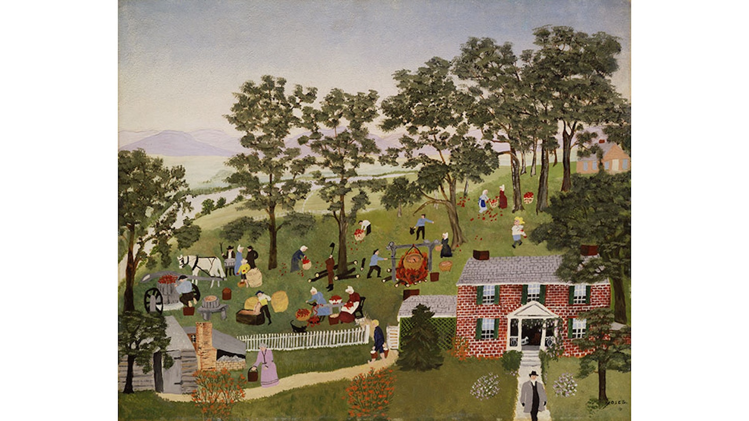 グランマ・モーゼスの愛称で親しまれるアンナ・メアリー・ロバートソン・モーゼス(1860〜1961)は、70代で本格的に絵画を描き始めた。生涯をアメリカ北東部の農村で暮らした経験をもとに、四季の移ろいや日々の仕事、季節ごとの行事などを、豊かな色彩と素朴な筆致で詳細に描き出し、101歳で亡くなる年まで1600点以上の作品を制作。これらの絵は偶然、村を訪れたコレクターの目にとどまり、1940年、80歳の時にニューヨークで初個展を開くこととなった。