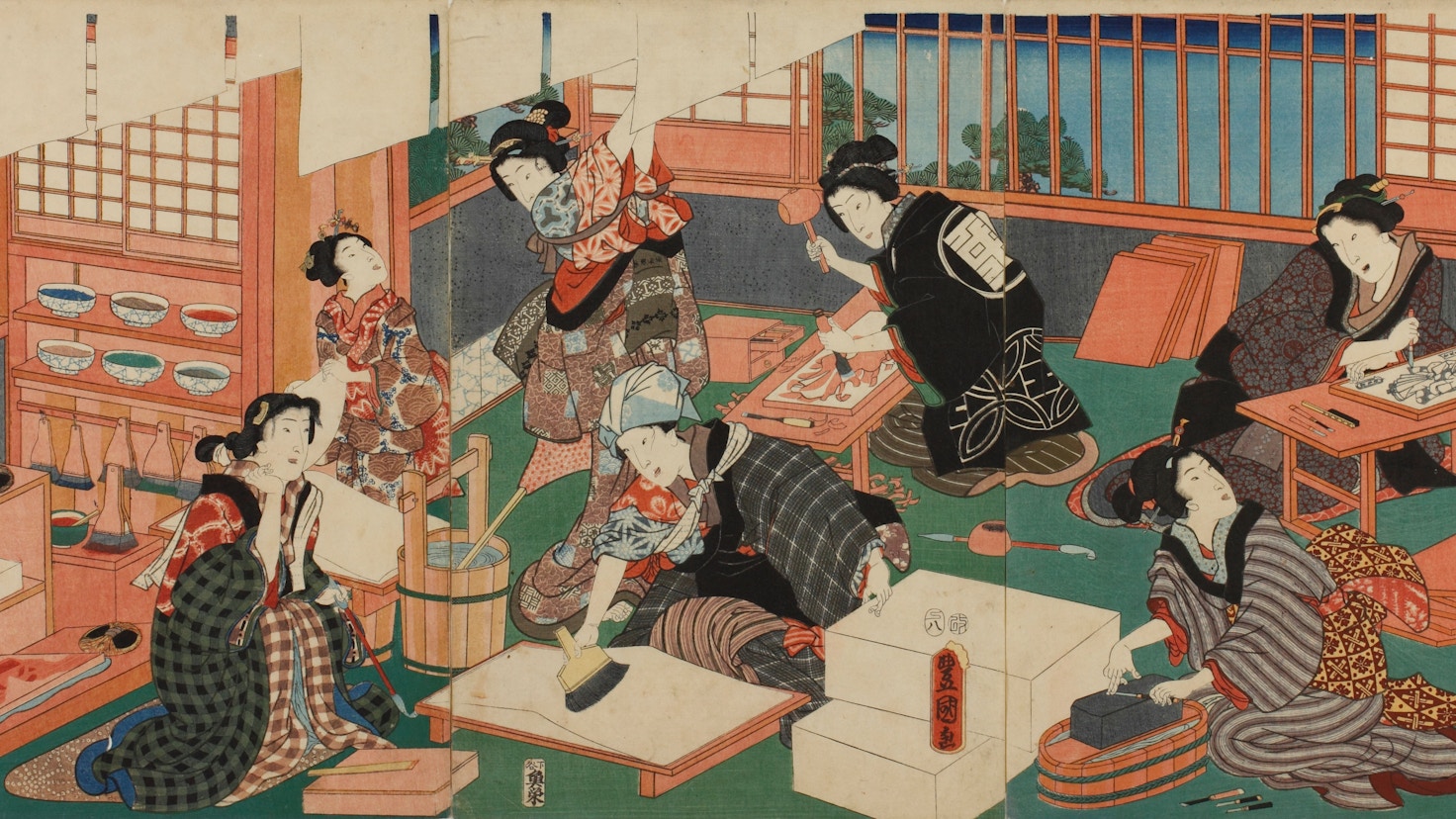 第1章「版画の技法」では、判形式と版種ごとに版画の技法をを解説。作品だけでなく、版そのものや使われる道具、制作の過程にも注目する。