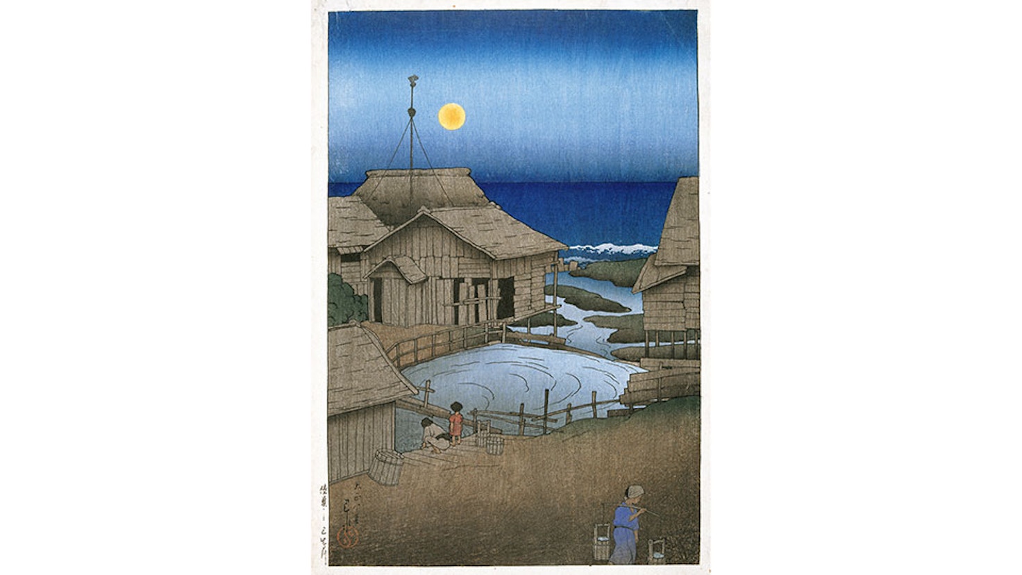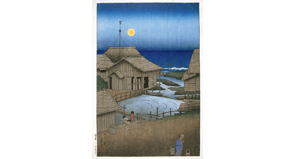 巴水の版画制作を支えたのが、浮世絵版画にかわる新しい時代の版画「新版画」を推進した版元・渡邊庄三郎だった。2人はともに海外にも通用する木版「美」の構築を目指し、そしていま、巴水の風景版画は郷愁や安らぎをもたらす木版画として多くの人々に愛されるに至った。
