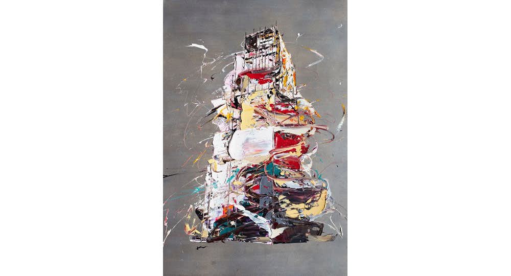 西川茂は1977年生まれ。約15年前に奈良に移り住み、現在は奈良市西部に生活と制作の拠点を置く。最近は加茂地区(京都府)にもアトリエを構え、大胆かつ静敢な西川独自のストロークに磨きをかけている。ここ5〜6年は養生シートで覆われた建築物、電波塔、大都市の摩天楼を多く描き、まるで現代の「バベルの塔」ともとらえられるような西川の近作には、無限に広がり高くなっていく現代の都市の未来像(結末)が投影されていると言える。