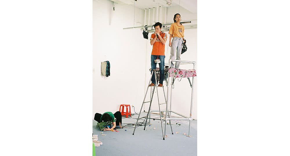 1993年生まれの楊いくみは、都市生活史を起点にパフォーマンス/インスタレーションを制作するアーティスト。主に山水画の遠近法を用いて空間と共同体をつくり、またパフォーマンスディレクションや舞台出演も行っている。今回の展示「When I quit eating tomato」では、ある架空のコミュニティの「半屋外生活空間」を提示し、人が共在することから生み出される多次元的なパースペクティブについて模索する。