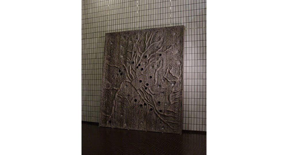 本展では、ダムの建設により誕生した人工湖・高滝湖の畔にたたずむ市原湖畔美術館の時空間をひとつのインスピレーションとして、巨大なヴォイド(アトリウム空間)を中心に、戸谷の「森」「土地」「水脈」シリーズに連なる作品を展観する。