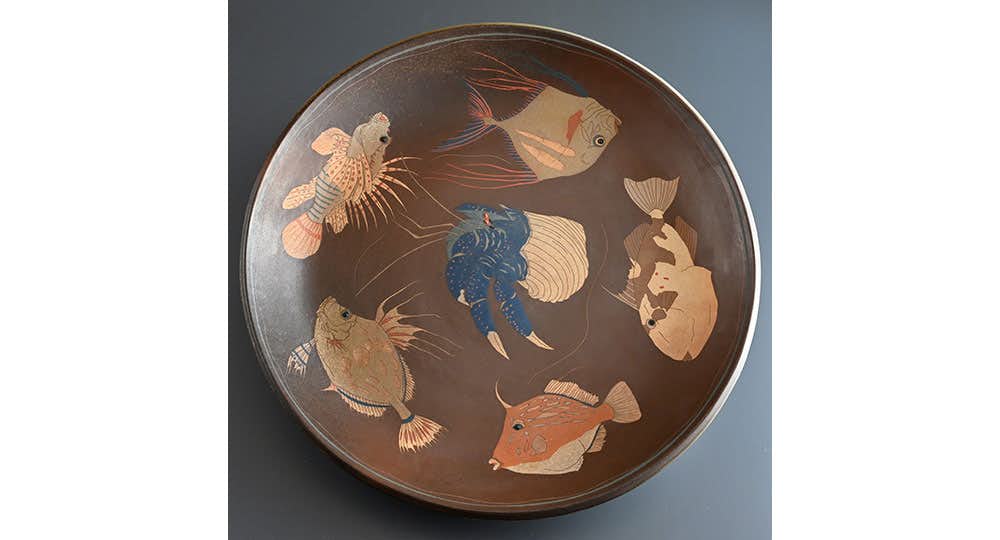 本展では、これまでほとんど公開されてこなかった初期作品をはじめ、オリジナル技法である苔泥彩や面象嵌、近年新たに挑戦している白砂瓷(はくさじ)まで、作家の作陶人生を作品や資料を交えて紹介。また使用している素材や生命感豊かなモチーフなど身近な自然や暮らしとの関わりに焦点を当てながら、𫝆井が長年培ってきた独自の美意識に迫る。