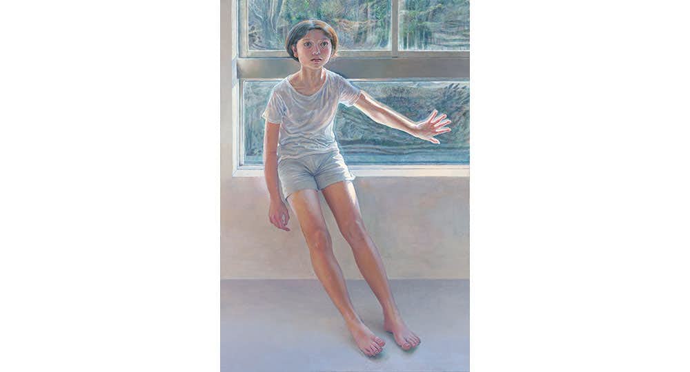 本展は前回に引き続き、モデルを描くという手法は踏襲しつつ、これまで室内灯のもとで描かれてきたモデルを自然光の入る「窓辺」へと移動させる。自然光の下にいるモデルを眼前に描き出すことは、モデル自身の日常生活における身体的変化に加え、季節や天候、時間により変わる光の具合など、日々変化する環境的な要素と絡み合うこととなる。