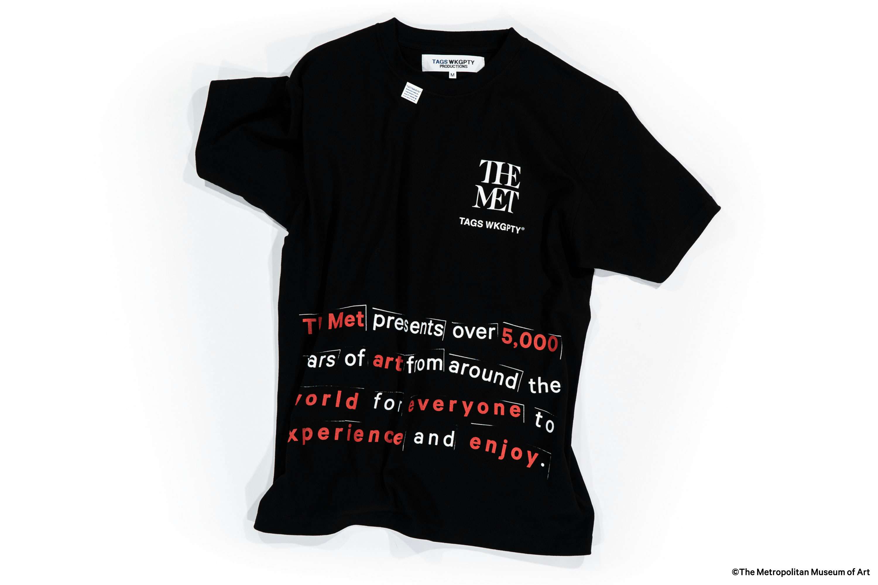 ベースを黒と白で展開するコラボレーションTシャツは、視覚的に優れたTHE METのロゴとプライマリーカラーの赤を基調に、異なる文化をつなぎ古いものへの敬意と現代的な解釈を加えたデザインが特徴。THE METのルーツや壮麗なファサードの建物、ロゴ、所在地までもを最大限に活かし、Tシャツというキャンバスをダイナミックに用い、ボールドフォントを施すことでTAGS WKGPTYの美学である遊び心をもったユニークなデザインが施されている。