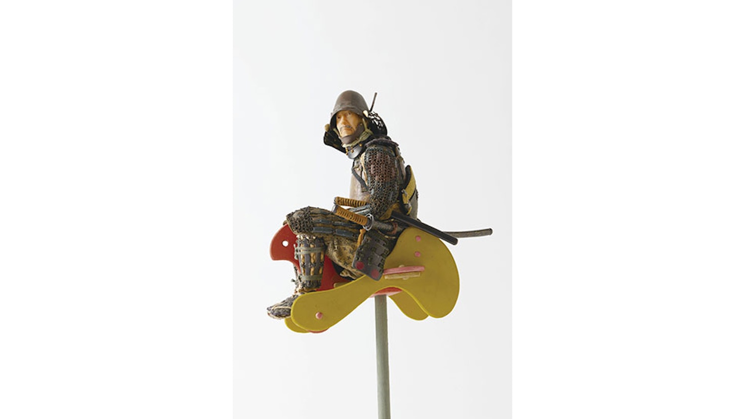 鎧を着た人物が所在なくたたずんでいるかと思えば、風船を見つめたり、空中に浮かんだり、時にはブランドロゴの付いた鎧を自然に着こなしたり。一見ユーモラスに見える野口の作品は、どこか物悲しい雰囲気を帯びており、そこには目まぐるしく移り変わる文明のなかで、喜びや苦悩といった矛盾を抱えながら生きる人間の姿が鋭い視線で映し出されている。