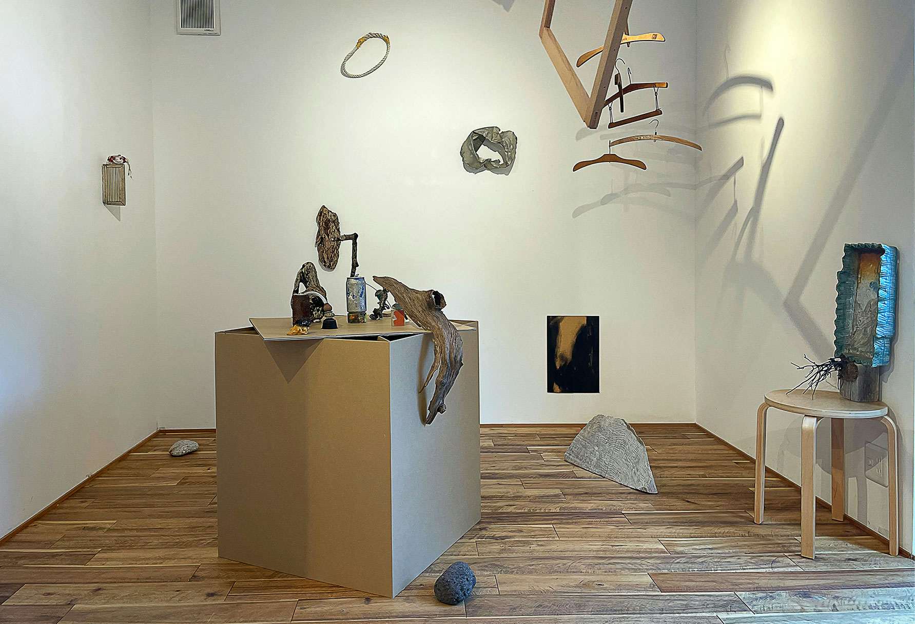 アーティストたちにとっては、初めての場所であり、慣れない土地・藤沢での滞在制作。そういった環境のなかで、井上は藤沢と広島、福島を往来し、俯瞰的に環境を観察しながら絵を描き、栗田は藤沢にゆかりのある人物やモノのかたちをクスに刻んだ。宙宙は海辺の漂流物や緑地で収集した木々などで自然のかたちを作品に表し、羅は行き交う人々の影を使った映像を制作、ビルの階段や踊場などに投影する。
