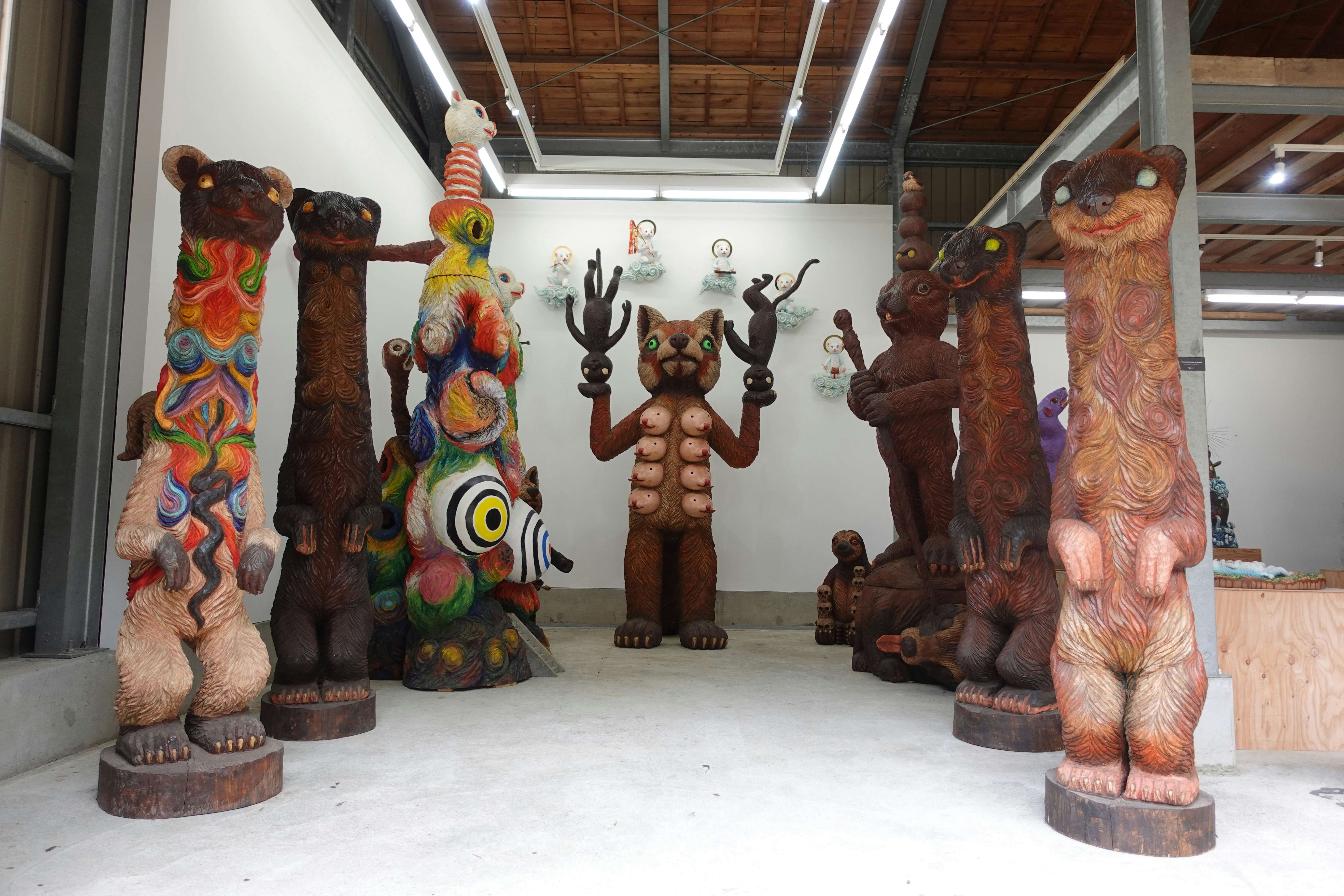 本展「Hide And Seek」の会場となるのは、日本家屋を現代美術のアートハウスに改装したARTSTAY maison FUWARI。母屋や蔵、庭園、かつて農具が入っていたガレージなどすべて使い、巨大彫刻を含む100点近い作品で占拠(かくれんぼ)する。