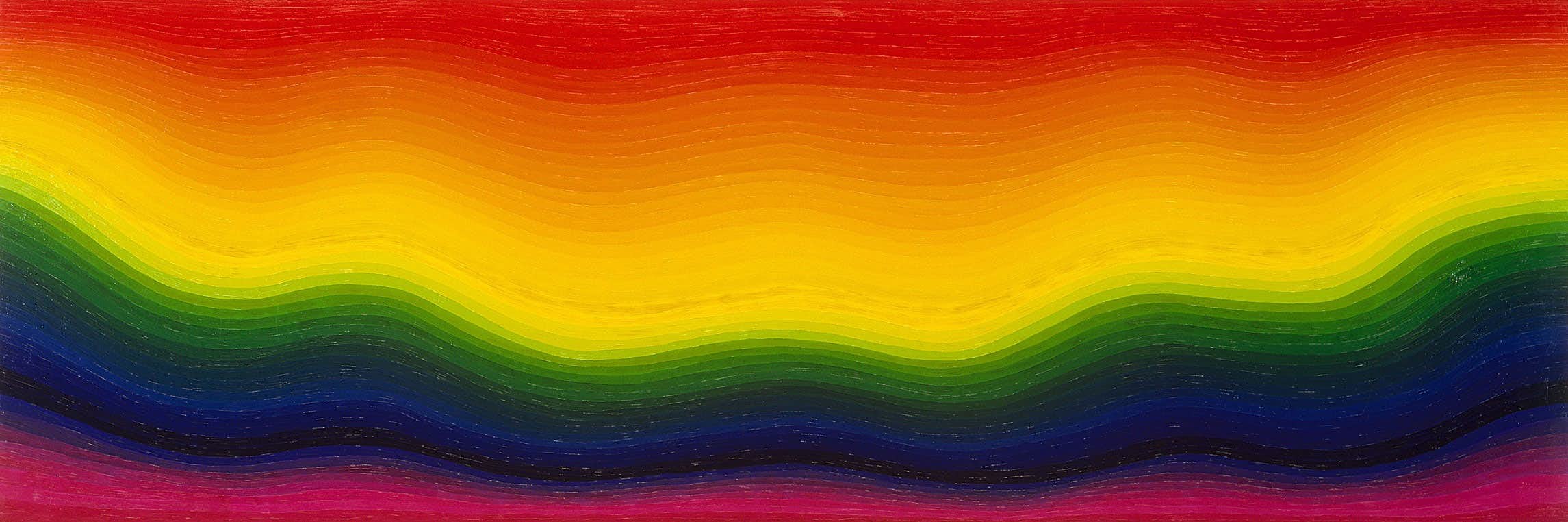 展示は「カラフル」「心地よさ」「光の中で」「カワイイ」「笑いとユーモア、そして遊び」「僕らはみんな生きている」をキーワードに所蔵品を紹介。出展作家は、田中敦子、靉嘔、土屋幸夫、斎藤豊作、秋岡芳夫、草間彌生、池田満寿夫ら。