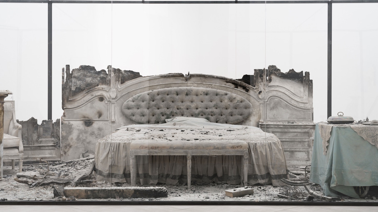 会場は、展覧会タイトルにも掲げる「新しい海」を象徴するインスタレーション《海底》から始まり、スタンリー・キューブリックの映画 『2001年宇宙の旅』に登場する原寸大の白色の部屋を再現し、風化させた大型の彫刻作品《善悪の荒野》、「共生」「世界の膨らみ」をテーマとした展示を経て、展示室の外へと続く新作の写真作品《小さな共通項(36人で同時に見上げた空)》で締めくくられる。生命誕生の起源が海であるなら、本展覧会が新たな発想の糧となり、これからの世界のありようへと影響を及ぼす 私たちの意識は「新しい海」と言えるかもしれない。