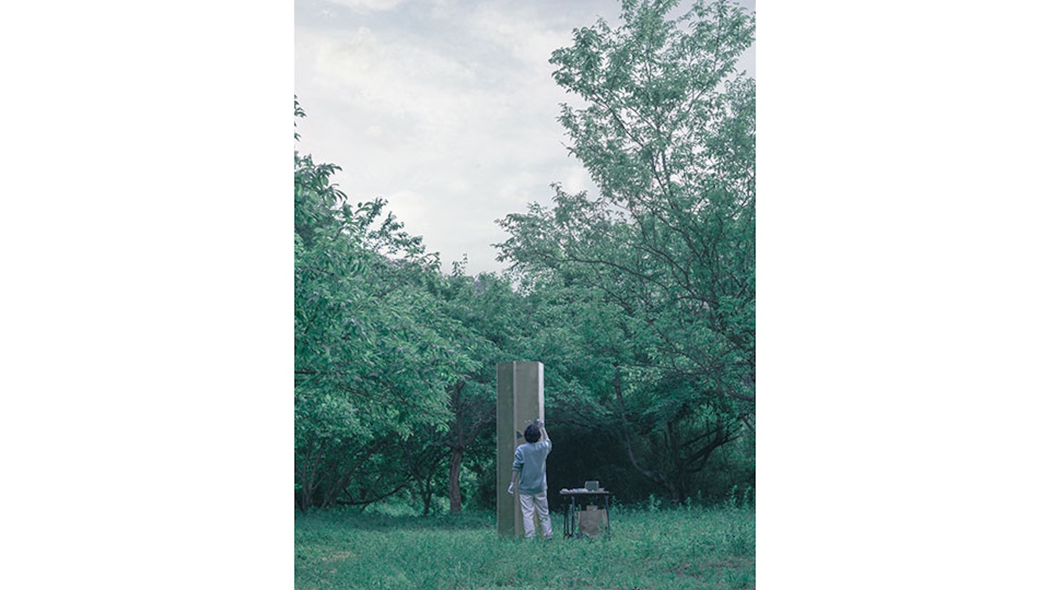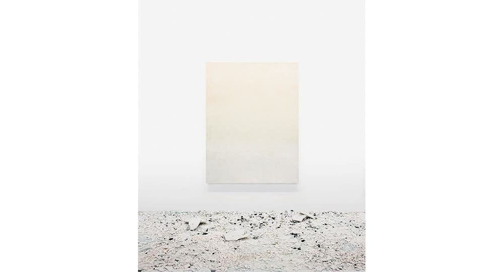 また本展では、太陽の下に作品をさらし、陽の光と作品自体の影によってグラデーションが現れる平面の新シリーズや、展示室のどこか完全な暗闇のなかに、かたちをとった瞬間から、作家本人でさえも永遠に見ることができない彫像の新作《想像》などが展示される。