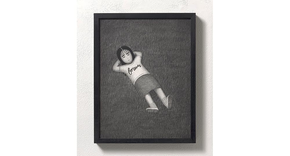本展では、芝生に寝そべる自身を1日1枚描くドローイング「forever」を制作。本展に寄せて、作家は次のコメントを出している。