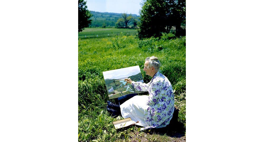 70代で本格的に絵を描き始め、80歳で初めて個展を開いたグランマ・モーゼスは、人生の大半を農家の主婦として家庭を支えてきたが、リウマチの悪化で得意の刺繍絵が上手くいかなくなったことをきっかけに絵筆をとった。ニュー・イングランドの自然や農村の暮らしを素朴な筆致で描いた作品は、偶然、村を訪れたコレクターの目にとまり、ニューヨークでの初個展に至った。
