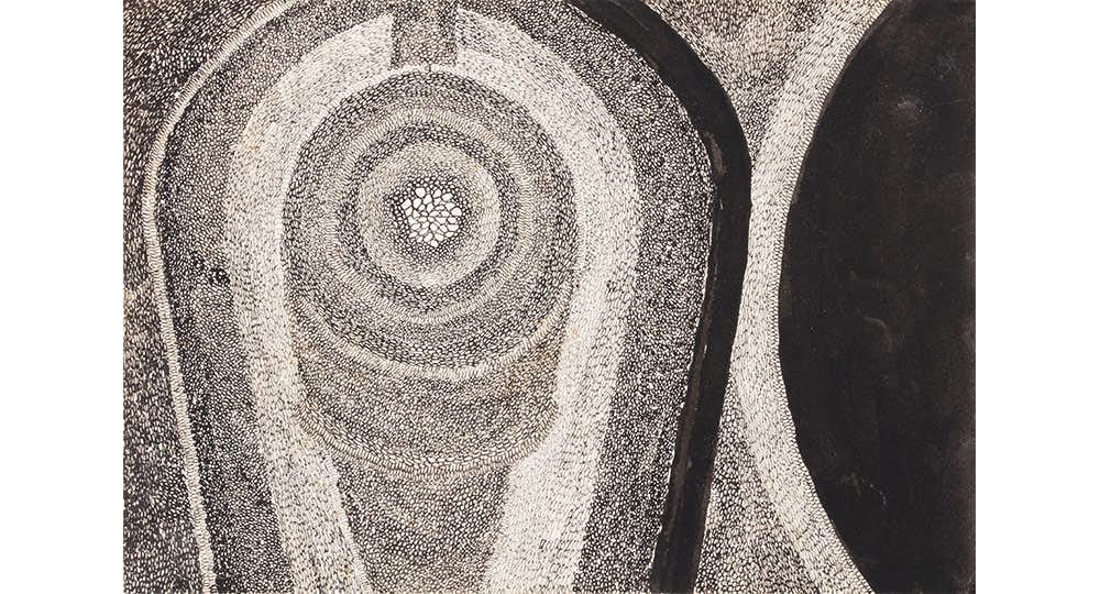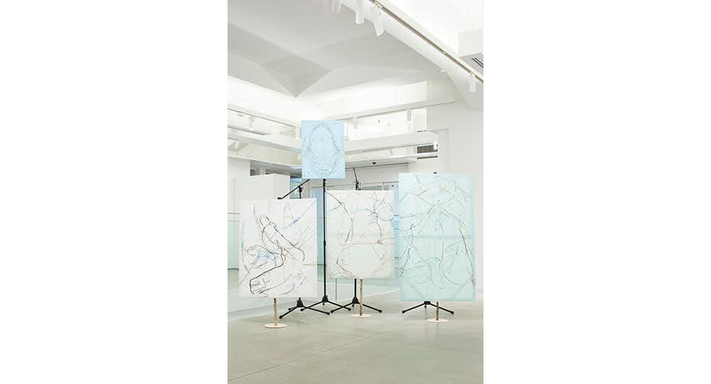 また軌跡は「線」そのものを示し、線によって描かれるドローイングには思考の源が表れ、線の軌道が描き出す「円」には、抽象的、幾何学的な形態のみならず、精神的なものを含めた概念や関係性を見出すことができるだろう。