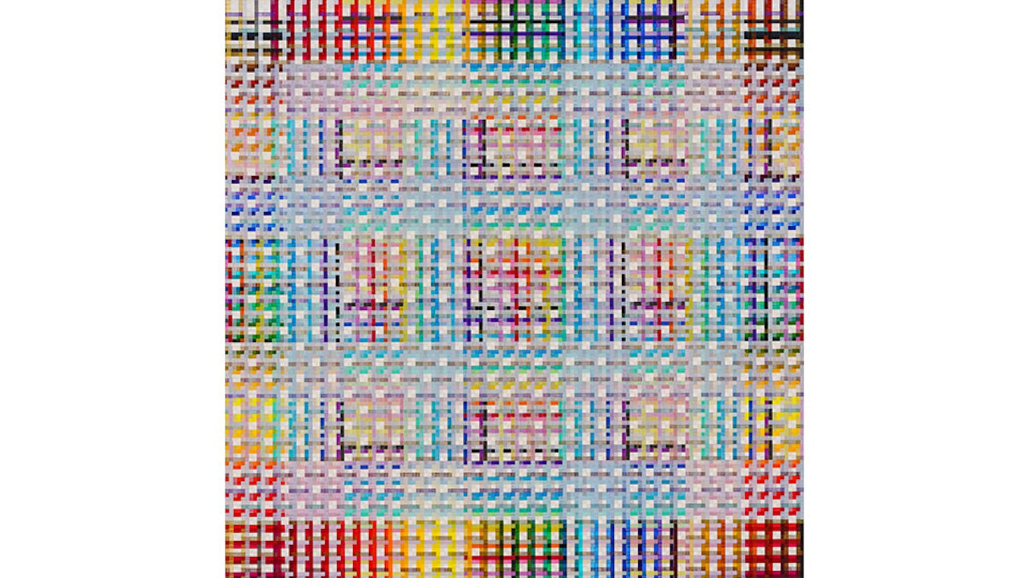 木製パネル一面に、小さく格子状に塗り重ねた色彩のグリッドが相関し共鳴する作品「グリッド・ペインティング」が、国内外で高く評価される川人。神経科学者の父を持ち、幼い頃から「脳を通して世界を把握する」ということを意識するようになり、また学生時代に京都で染織を学んだことなども影響し、「制御とズレ」という普遍的なテーマへとたどり着いた。綿密に人がつくるものに生じるズレの美しさを意識した重なり連なる色彩は優美で印象深く、光によって気まぐれに顕現する複雑な色彩も神秘的な魅力を放ち、鑑賞者を引き込む。