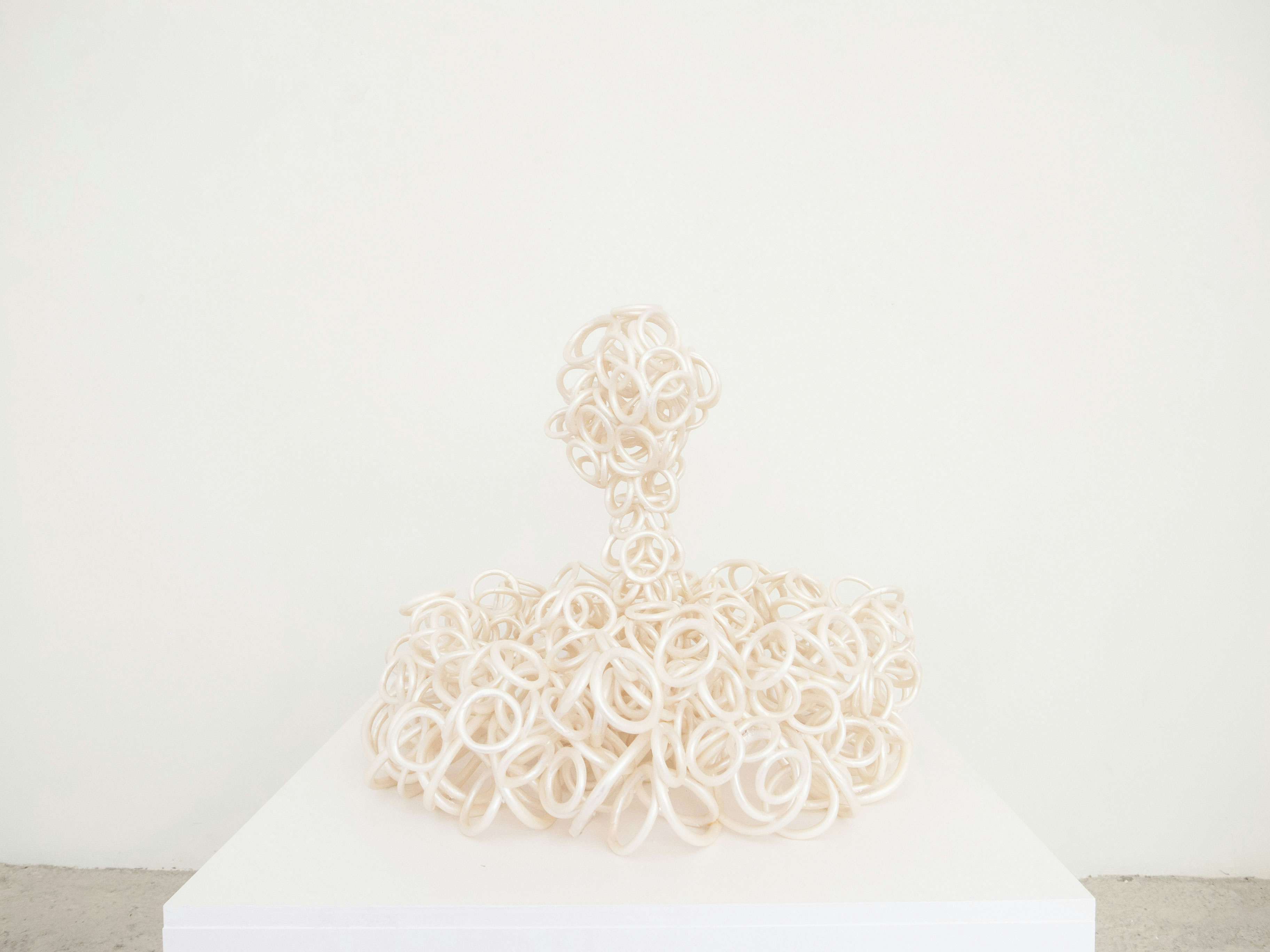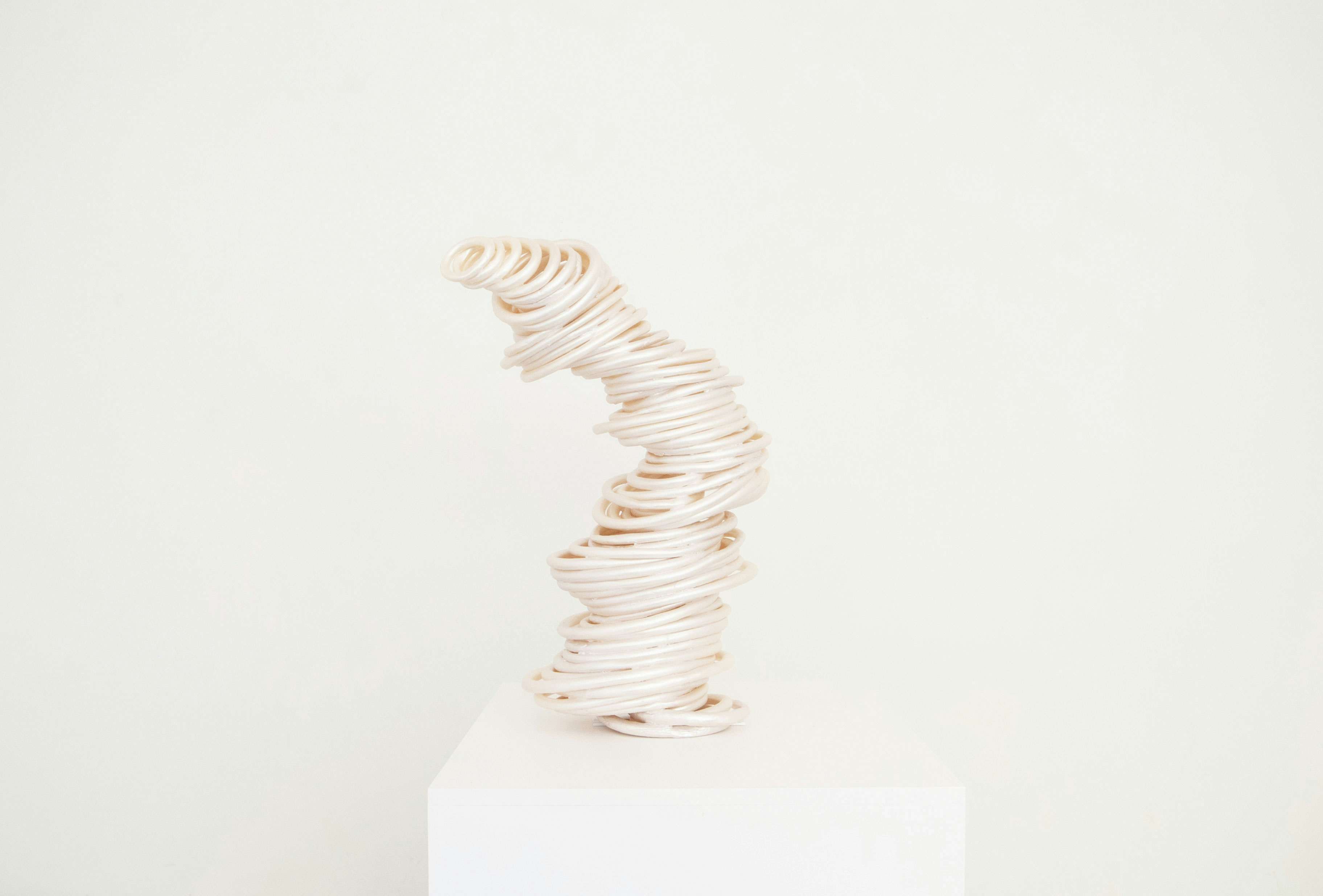 20年の夏、沖縄を訪れた後、しばらく遠ざかっていた立体の制作を再開させた大垣。戦時中全島で多くの命が失われた歴史のある沖縄で、砂浜に打ち上げられた珊瑚の骨を発見し、その造形や色にふれ、戦争などの犠牲者への追悼の意を込めて、生命力や宇宙との連なりを新たな「UZU」シリーズで表現した。