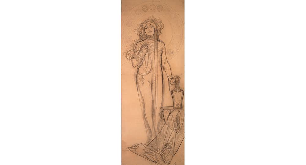 本展では、ミュシャが初めて制作したポスター《ジスモンダ》をはじめ、代表的なポスター作品を中心に、下絵や《装飾資料集》などミュシャ・スタイルの手引書も紹介。モチーフや構図、ミュシャのデザイン論もひも解きながら、「ミュシャ・スタイル」の世界へ誘う。