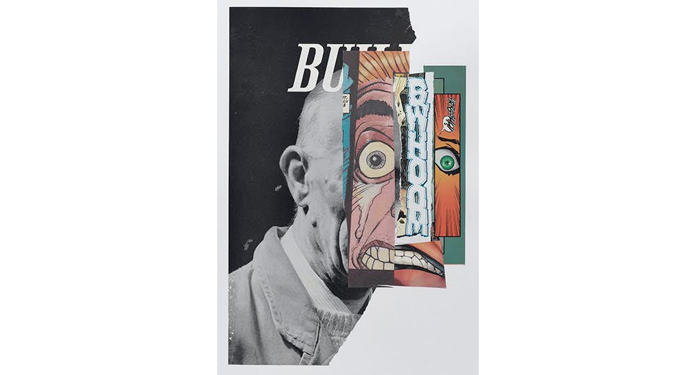 今回の「Voices」で発表されるコラージュはすべて、2020年にマークレーがロックダウンを経験した際につくり出した。「Toxic Talk(害のあることば)」と題された一連のコラージュでは、マンガやコミックから巧妙に切り出された怒った横顔のイメージが両端に配され、それぞれの口から出ているくねくねとしたラインが互いに絡み合っている。それらのラインは声にかたちを与え、その声は私たちに恐れを想起させ、しばしば恐れを怒りへと導く。