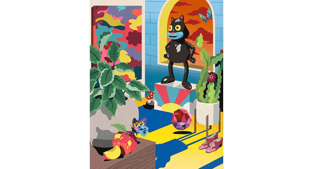 本展はDABSMYLAが2021年に制作した新作に焦点を当てて展示。遊び心のあるユーモラスなオリジナルキャラクターたちが鮮やかな色彩で緻密に描かれ、筆の痕跡を感じさせないシームレスな表面が見る者の目を引く作家の世界観を堪能できる作品群が揃う。