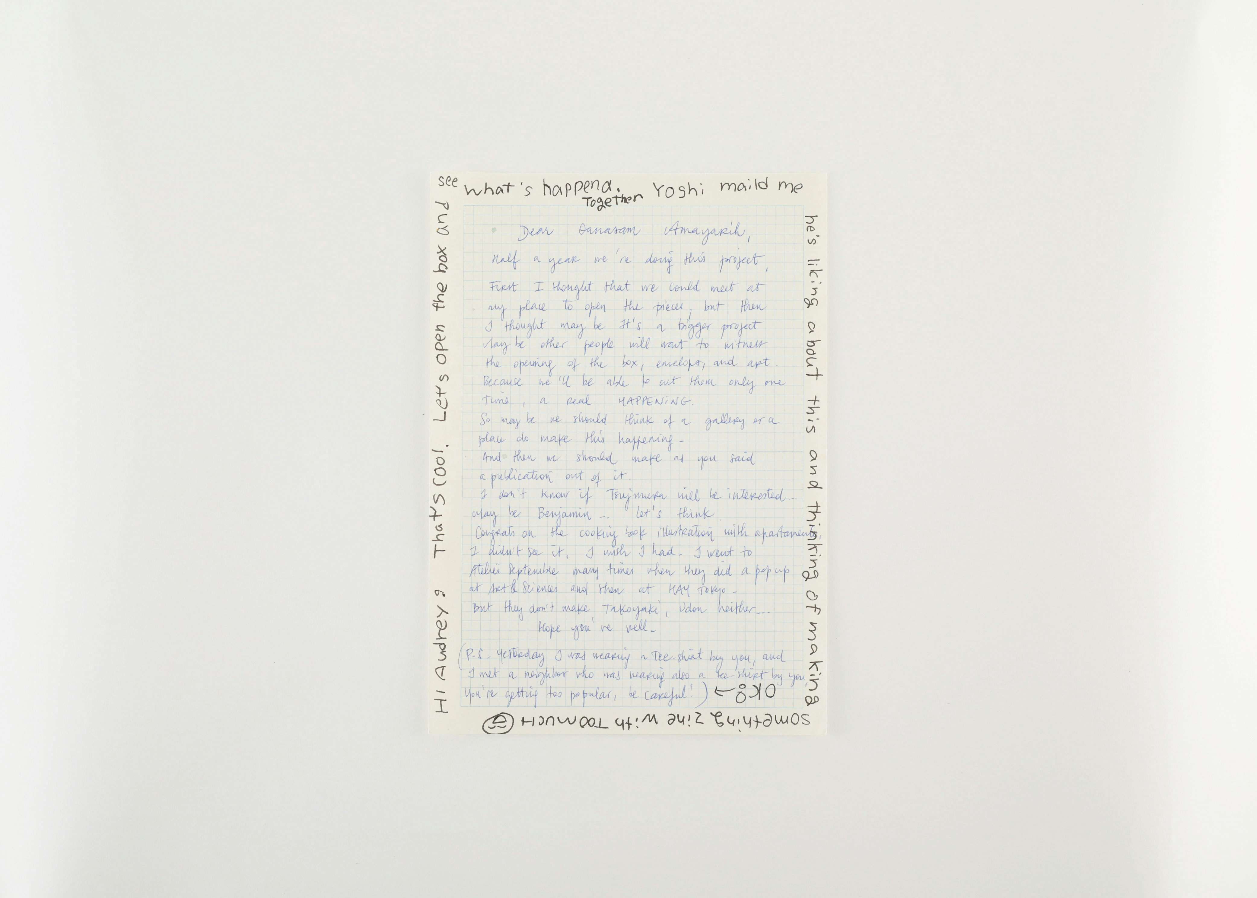 「優美な死骸」は、20世紀初頭にシュールレアリストたちによって生み出されたゲーム。複数人の参加者によって行われ、1人目の参加者が細長い1枚の紙の端に絵を描き、その部分を折り曲げて隠し、次の参加者に渡して続きを描いてもらう。全員が描き終わった段階で完成となり、紙を広げて全体の絵を見る。フランスでの美大生時代から、直感的で予想できないようなものを生み出す「優美な死骸」に親しんでいたオードリーは、この楽しいゲームをベースにプロジェクトができないかと思いつき、自身が知っているもっとも直感的なアーティストである平山に声をかけ、今回の「101 to 101」がスタートした。