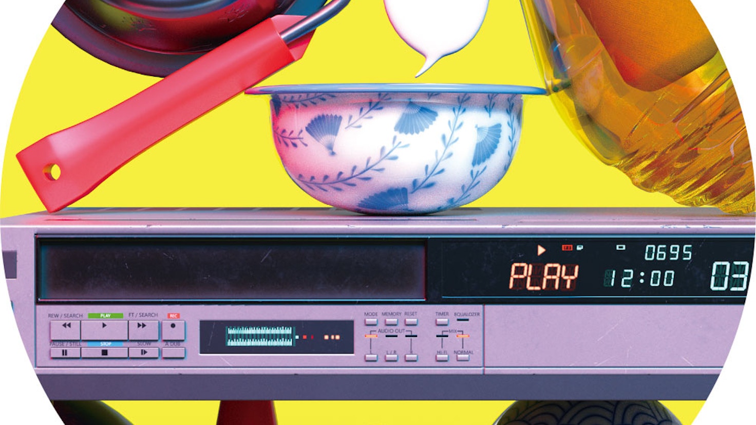 本展で岡田が発表する3DCG作品のシリーズ「フォルム」は、パッケージデザインや商品のモックアップ(試作品の模型)をつくるために使用される3D制作ツール「Adobe Dimensions」や「Adobe Substance 3D Stager」を用いて制作されたもの。「フォルム」のイメージに登場するプロダクトや植物などのモノは、いずれも私たちに馴染み深いモチーフであり、実際にツール内で誰でも入手できる素材だが、岡田はこれらの本来の機能性を無視して「どう積み重ねるか」を試行錯誤し、イメージ彫刻作品として表現している。
