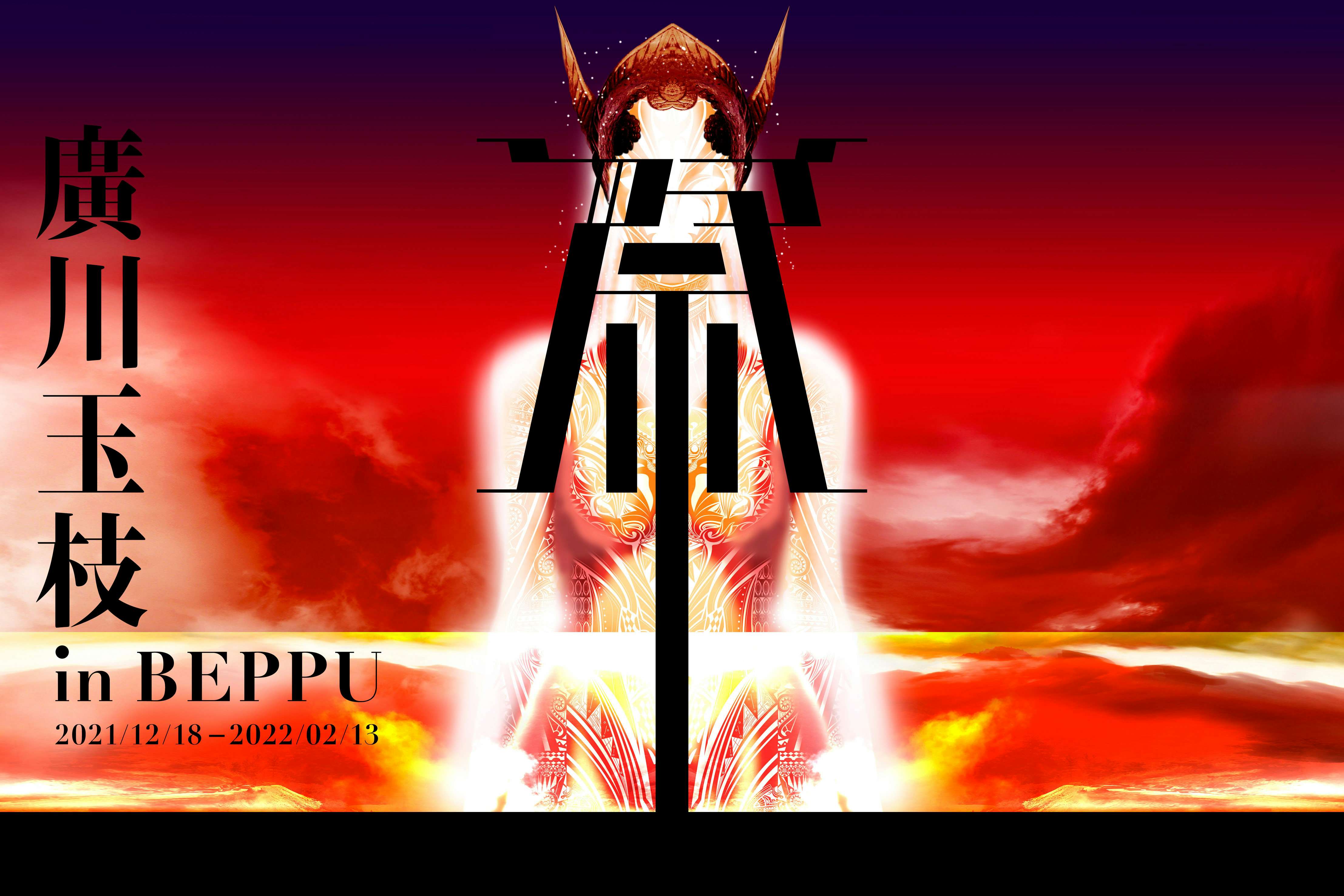 日常生活が大きく変化し、先行きを予測できないこの時代に、廣川が本祭のテーマとして見出したのは「祭」だ。時間、場所、人、様々なものを未来へとつなげていくために、廣川は新たな「祭」を別府にて市民とともにつくり上げ、とりわけ別府の「地嶽」に感銘を受けたことから、噴気が沸き立ち大地のエネルギーを直接肌で感じられる鉄輪温泉街をメイン会場として、「廣川玉枝 in BEPPU」を展開。本祭は、廣川が創作した「祭=神事」と、鉄輪エリアでの屋内外のインスタレーションや、祭で使用する衣裳展示などの常設展示で構成される。