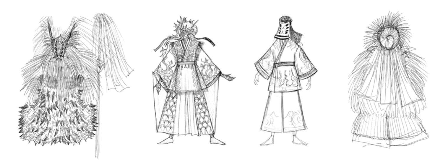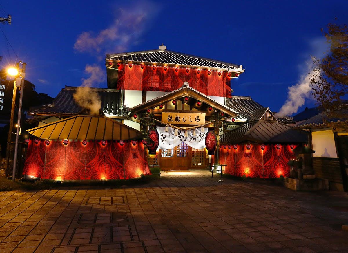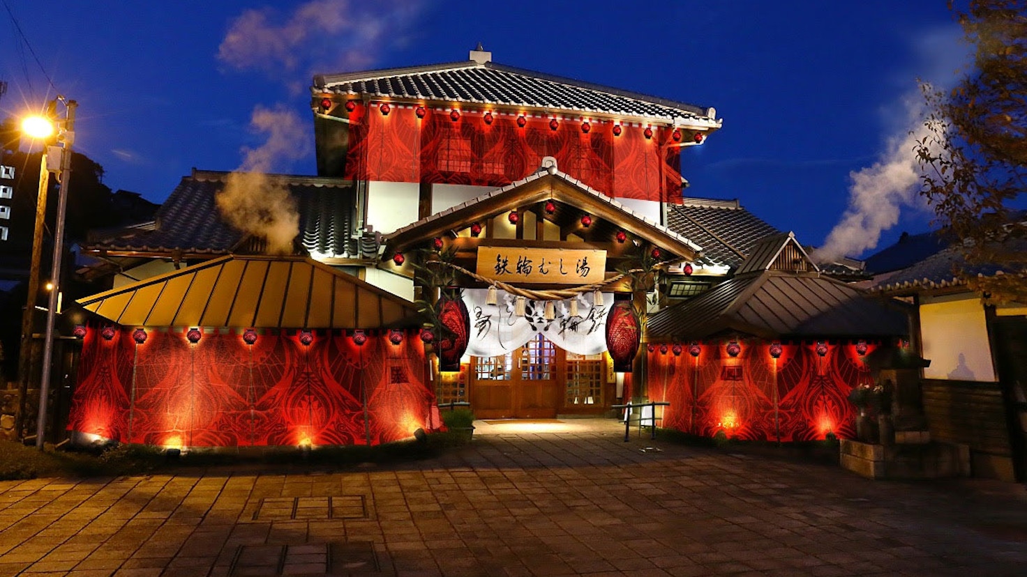 また、常設展示「鉄輪むし湯」では、廣川の代表作「Skin Series」でつくられた魔除け提灯や暖簾で大胆に彩り、楔祓(みそぎはらえ)のインスタレーションを展開するほか、由緒ある火男火賣神社と噴気たなびく大谷公園の2会場で、「祭」で使用する神々の衣裳を展示する。