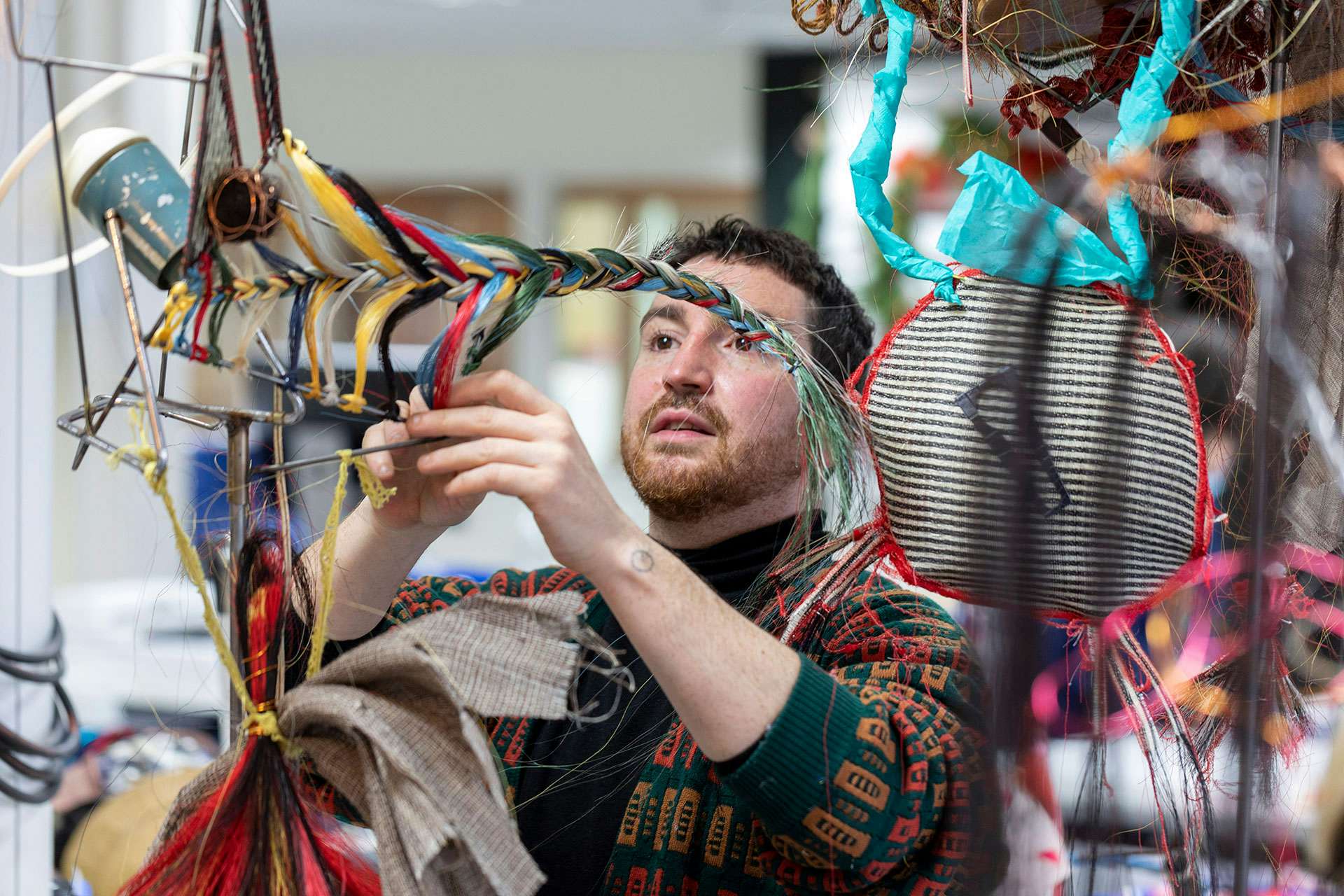 エルメス財団が主催する「アーティスト・レジデンシー」は、アーティストをエルメスの工房に招聘し、職人と体験の共有や協働制作を行う財団のプログラム。2010年より継続して実施され、現在までに34人のアーティストが21ヶ所の工房に滞在し、皮革やシルク、クリスタル、シルバーなどの様々な素材を用いながら、職人技術にふれ、好奇心に満ちた作品を生み出してきた。これまでの活動の成果は、「コンダンサシオン」展(パリ、2013/東京、2014)、「眠らない手」展(パリ、2017/東京、2018)を通して紹介された。