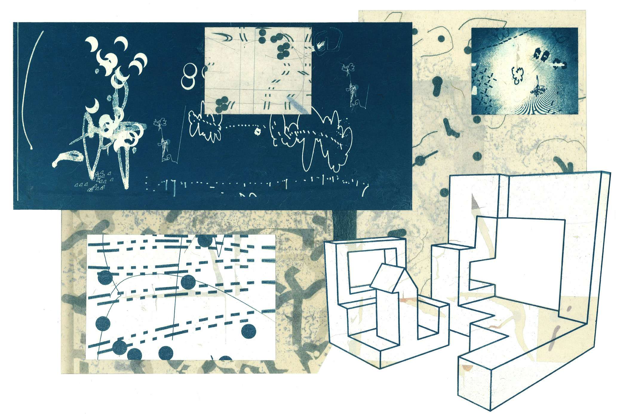 ホリグチが行うこのプロセスは、自身が手で線や色を加えることによって画面に手触りを与え、目で見たときや写真で撮影した時とは異なる要素を生み出す。空間をカメラで撮影して抜きとった無機質なデータから、作家自身も予測できない作品をつくり上げている。