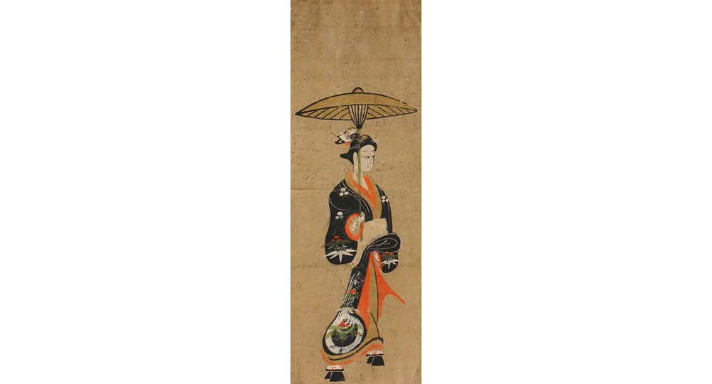 東海道53番目の宿場町である大津では、江戸時代初期から信仰の一環として仏画を主題にした大津絵が描かれ、やがて風俗画に教訓や風刺を含む道歌が書かれるようになり、画題は100種類あまりまで増えたと言われている。旅人たちは、これを名物土産として購入し全国的に広まった。しかし、安価な実用品として扱われたためか、現存する大津絵は多くない。