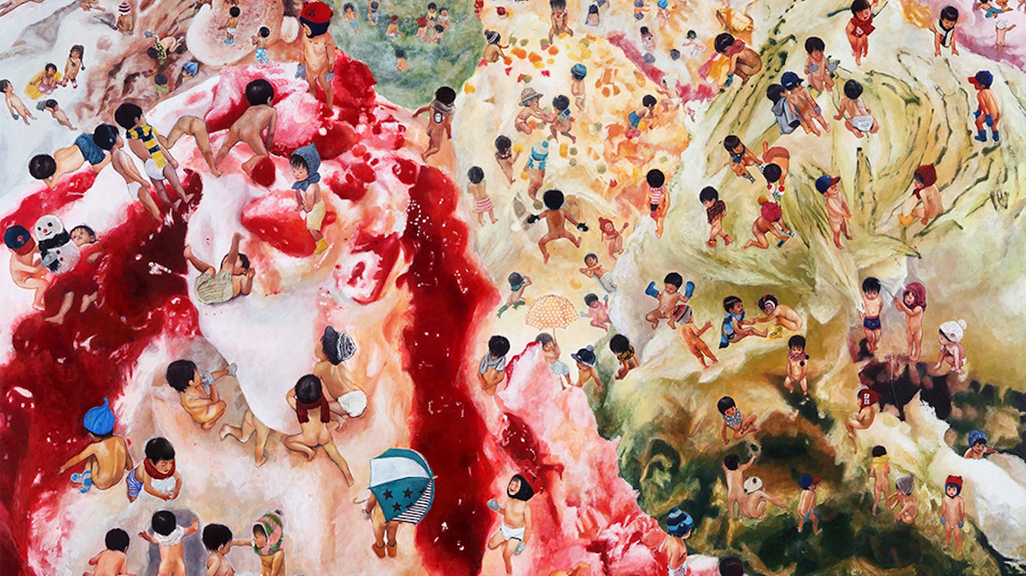 本展では、鮮やかな色彩で描かれた新作3点と、鉛筆によるドローイング作品を発表する。