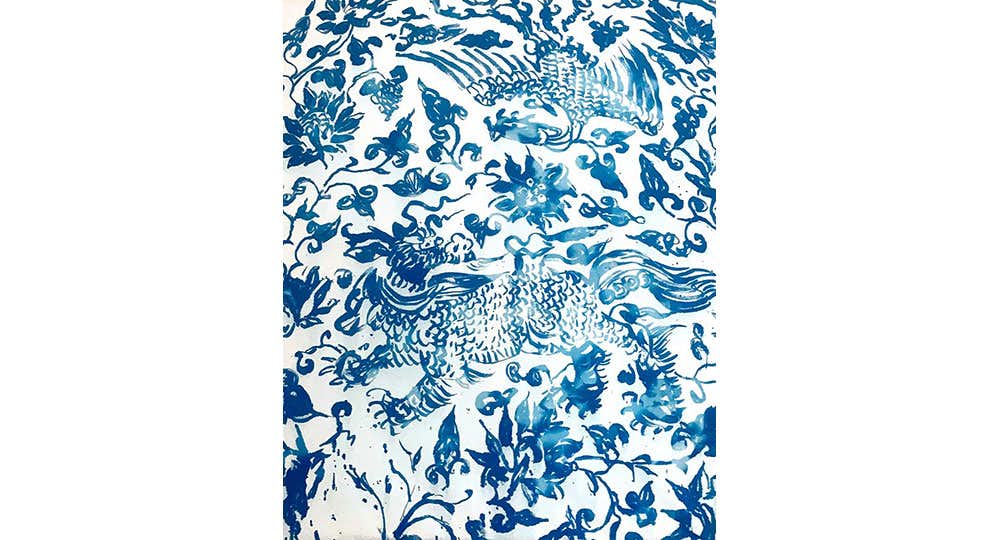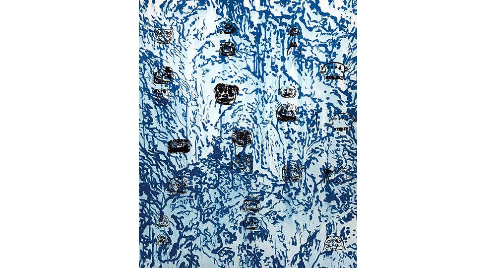 日本の近現代の物事を題材する岩熊は、平面作品のみならず、衣服や家具、ヴィデオを用いた多角的なインスタレーションで知られる。今回は「nn asia Tuoy bikE」と題した、紫外線を浴びることで鮮やかなプルシアンブルーを生成する「サイアノタイプ」を使用した絵画作品を展示する(タイトルの「nn asia Tuoy bikE」は「えきびょうたいさん」のアナグラム)。