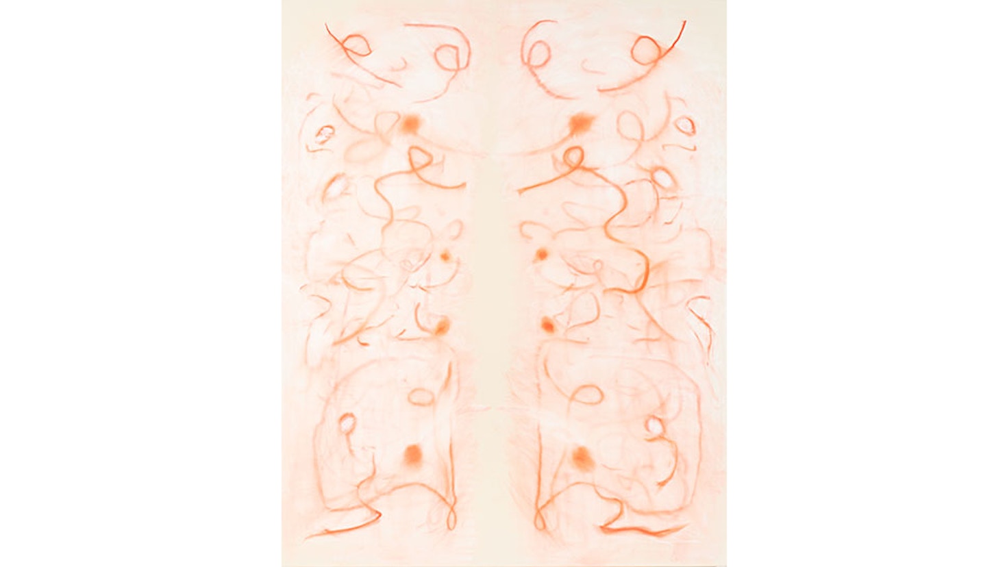 ソーは、右手と左手の動きをシンクロさせて描くパステル作品のほか、漂白剤を用いて自らの身体を布にトレースした作品や、初となる映像作品を発表。小内は、本展のために制作した新作詩集『宝石の展望台から湖が見える』を発表し、会場で先行発売も行う。