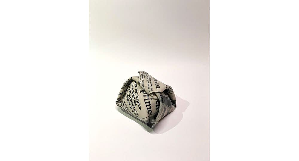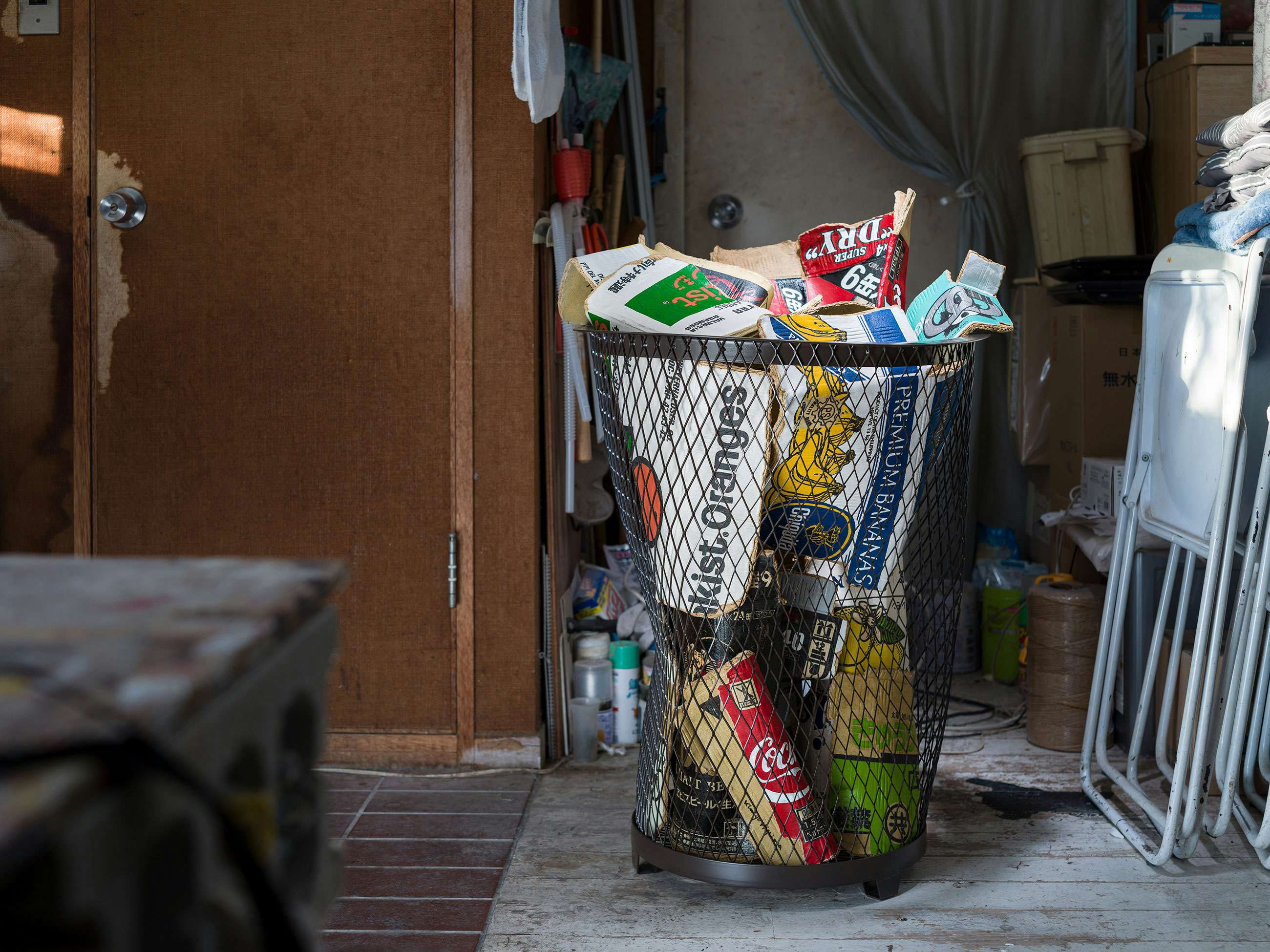 三島は1932年大阪市生まれ。現在、十三(大阪)と土岐(岐阜)を拠点に活動。50年代より一貫して新聞や雑誌、ダンボール、空き缶など日常に身近な「情報」を題材に制作を続けてきた。