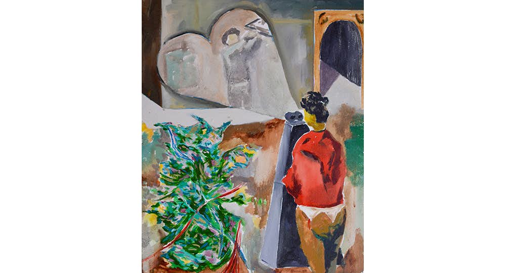寺本はこれまでペインタリーな作品を制作しつつも、それらをひとつの構成要素として、空間における構造や展示手法に意識を向けたインスタレーションでの発表を中心としていた。本展では「Patio」と題し、絵画作品を発表。インスタレーションで思考してきた空間や関係性が、絵画に回帰し包含され描かれている。