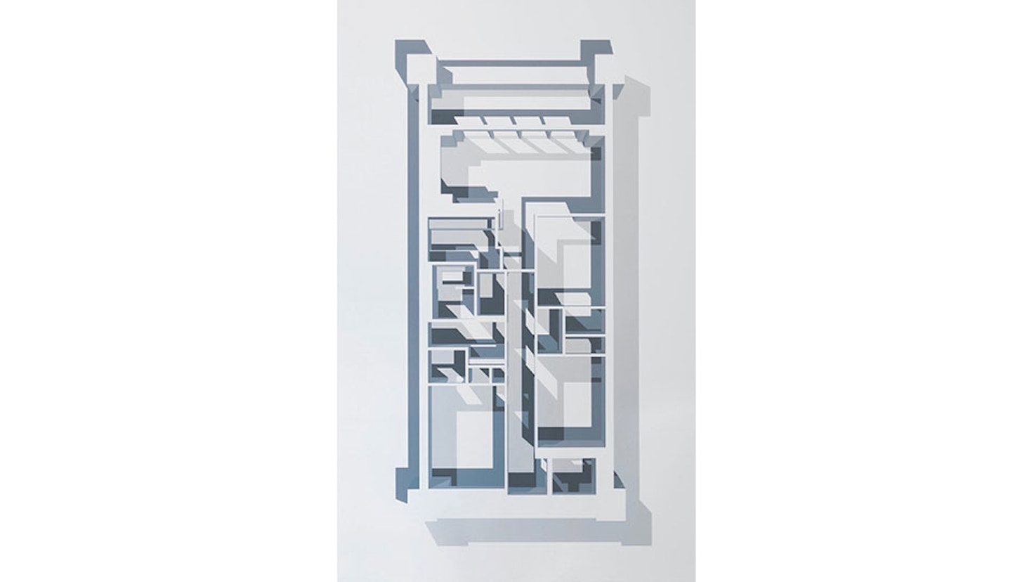 抑えられた色彩、線や面の構成からなる2人の作品は、一見するとミニマルな佇まいを見せる。佐々木はキャンバスに描く対象となる建築空間を起こすことから始まり、花木の作品には、変形の支持体に塗り重ねる絵具や筆跡があらわれるなど、どちらも少なくない手数で複雑な制作過程を踏んでいることがわかる。