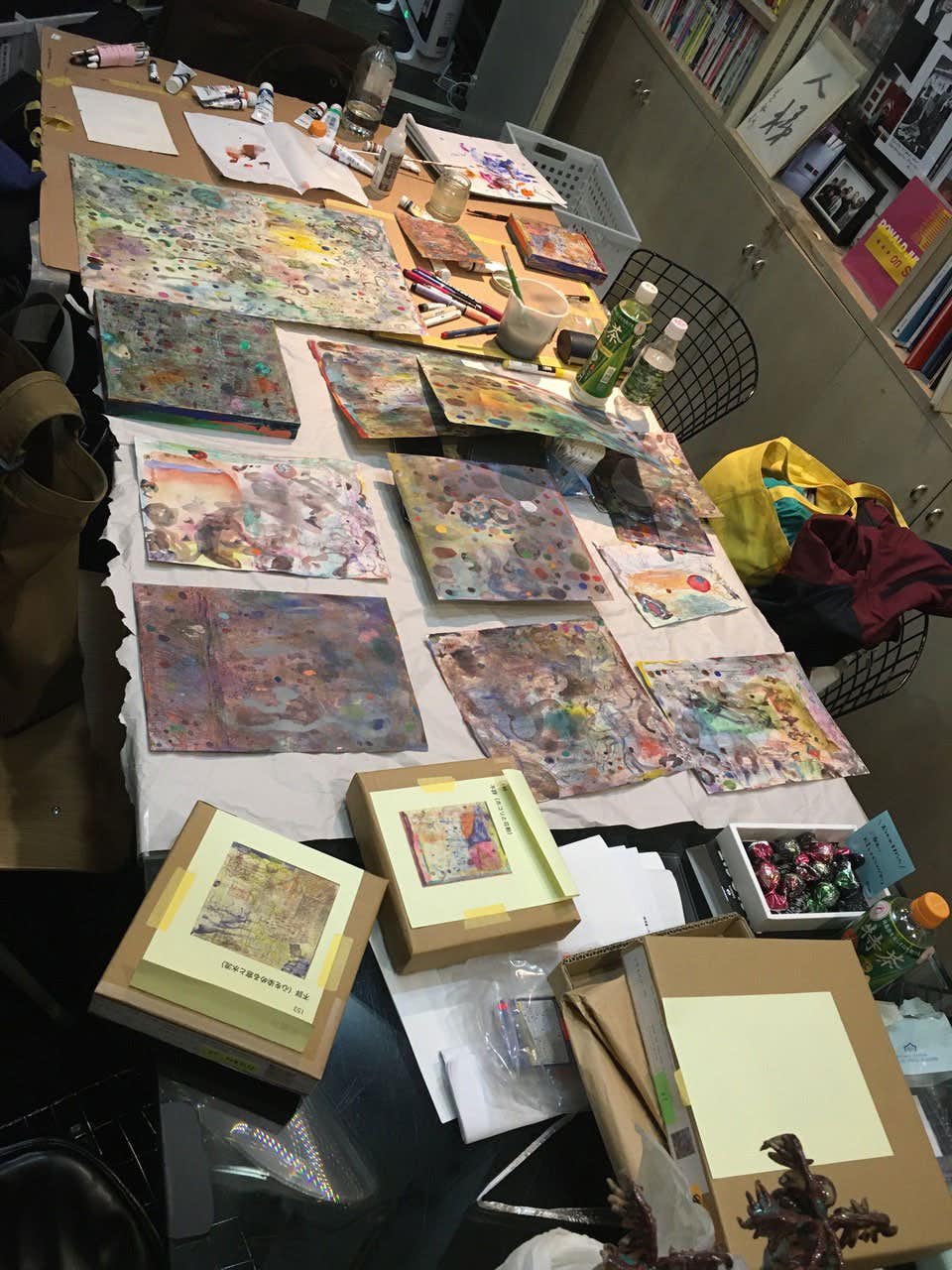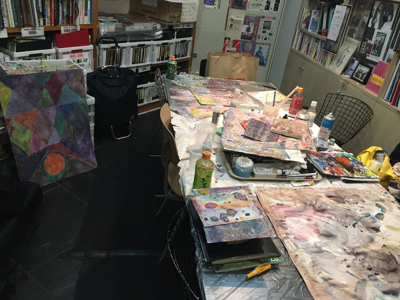 これまでもワタリウムのオフィスでは、ナムジュン・パイクやファブリス・イベールらアーティストたちが突発的・即興的なドローイング制作を行っている。それらの作品は直ちに展示に反映され、展覧会の同時代性やライブ感を際立たせてきた。